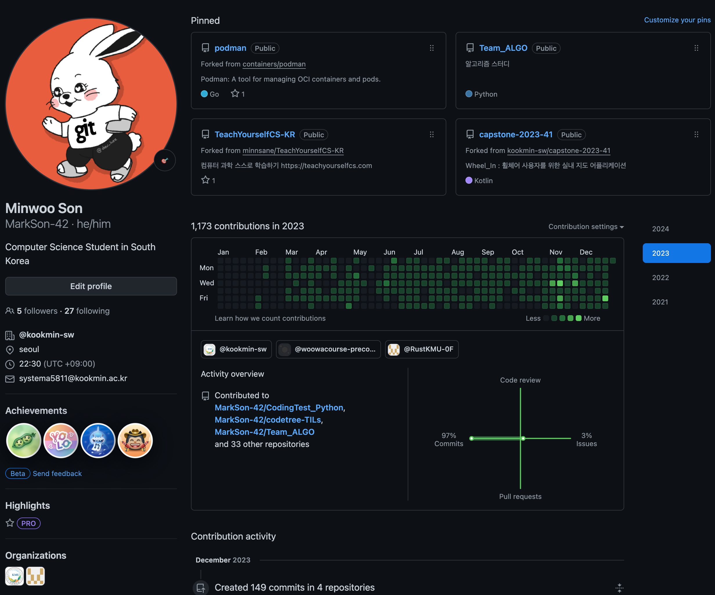 깃헙 잔디들을 보면.. 커밋이 꽤 많은데 사실 쉬운문제만 정말 많이 풀고 어려운 문제는 많이 못풀었다.