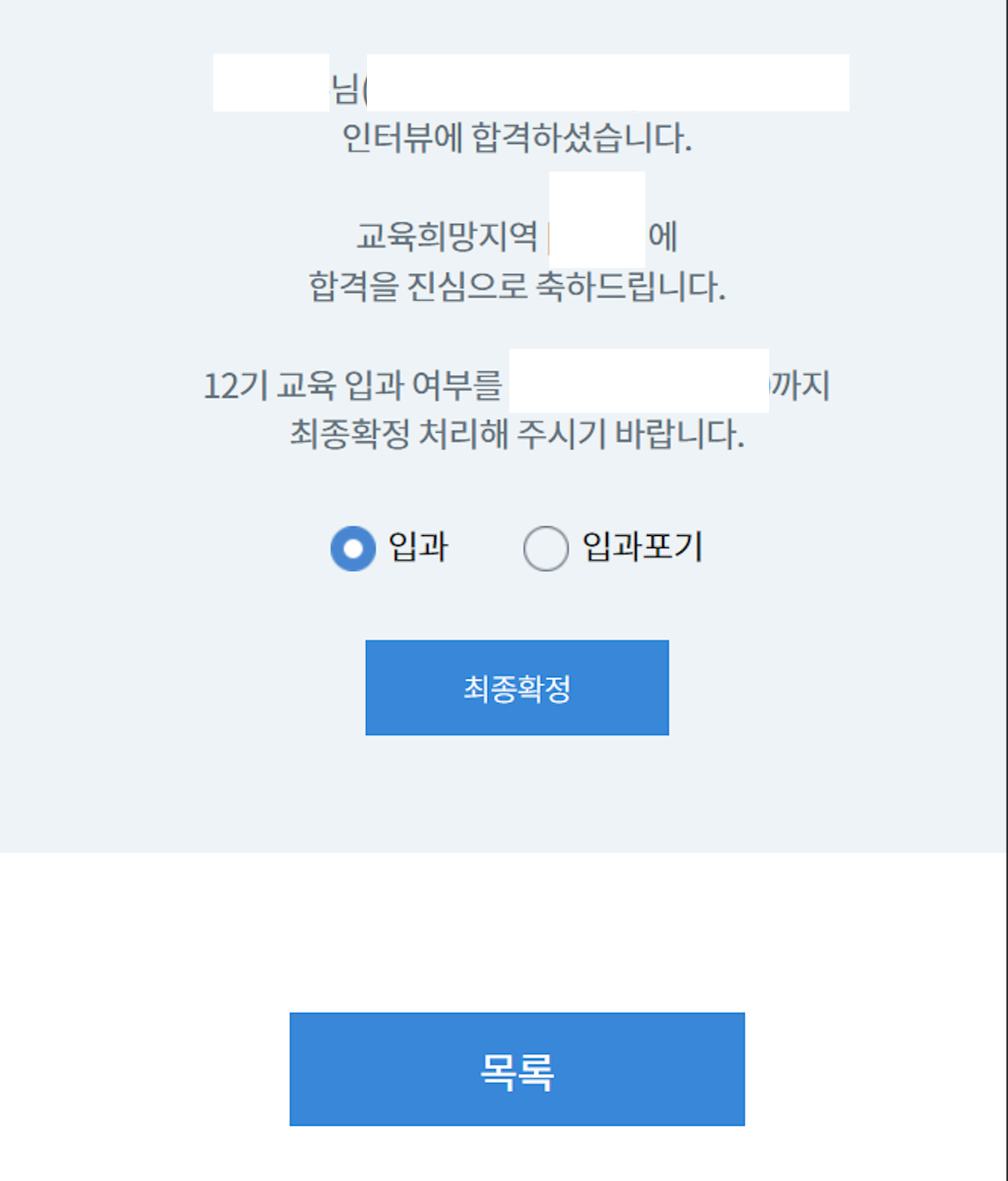 다행스럽게도 원하는 1지망 지역에 최종합격했다.