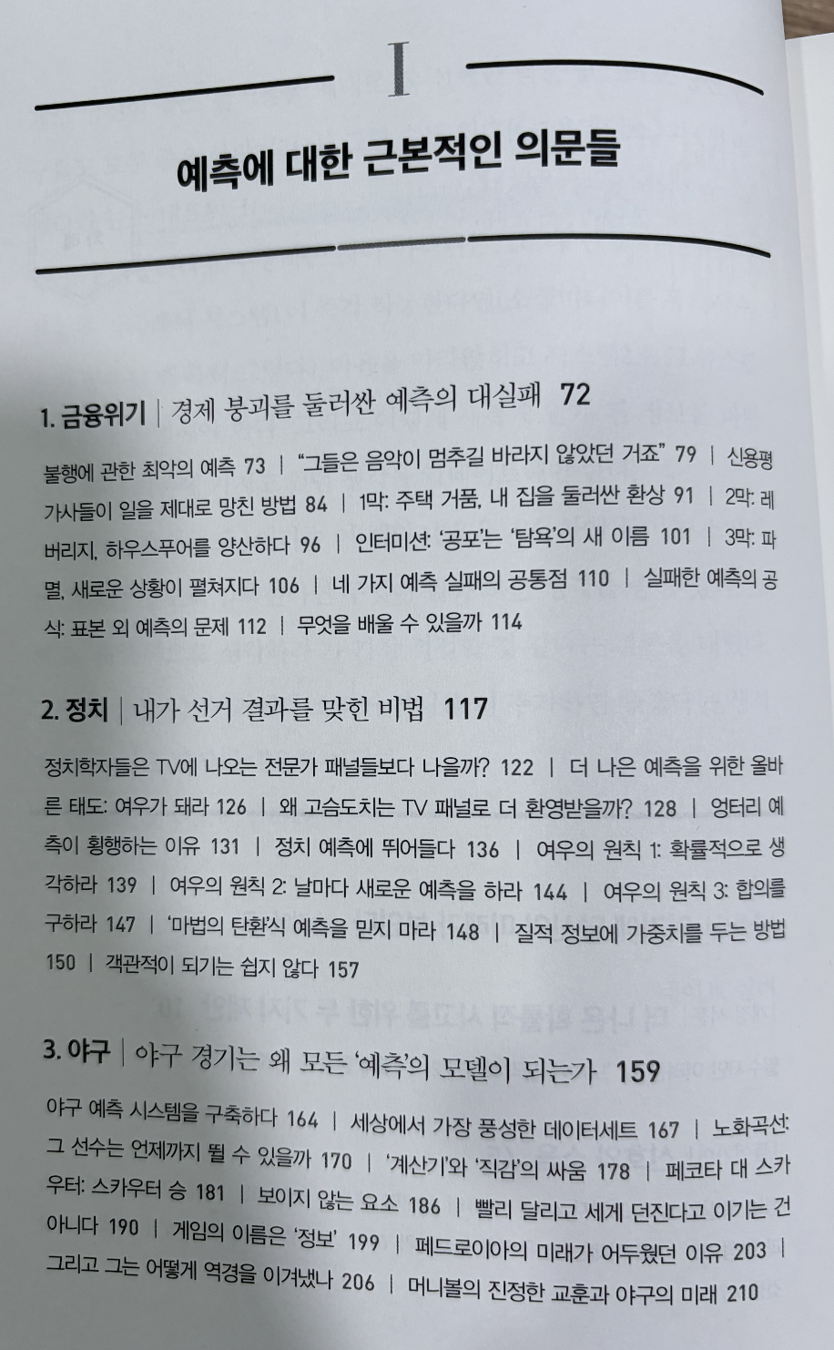 - 이 글에서 예시로 든 「신호와 소음」 의 경우에 서문, 2장의 6챕터, 3장의 8챕터, 4장의 11챕터, 그리고 마지막 글을 포함해서 대략 150페이지를 한줄한줄 상세하게 읽고 나머지는 각 챕터의 결론부만 읽었다.