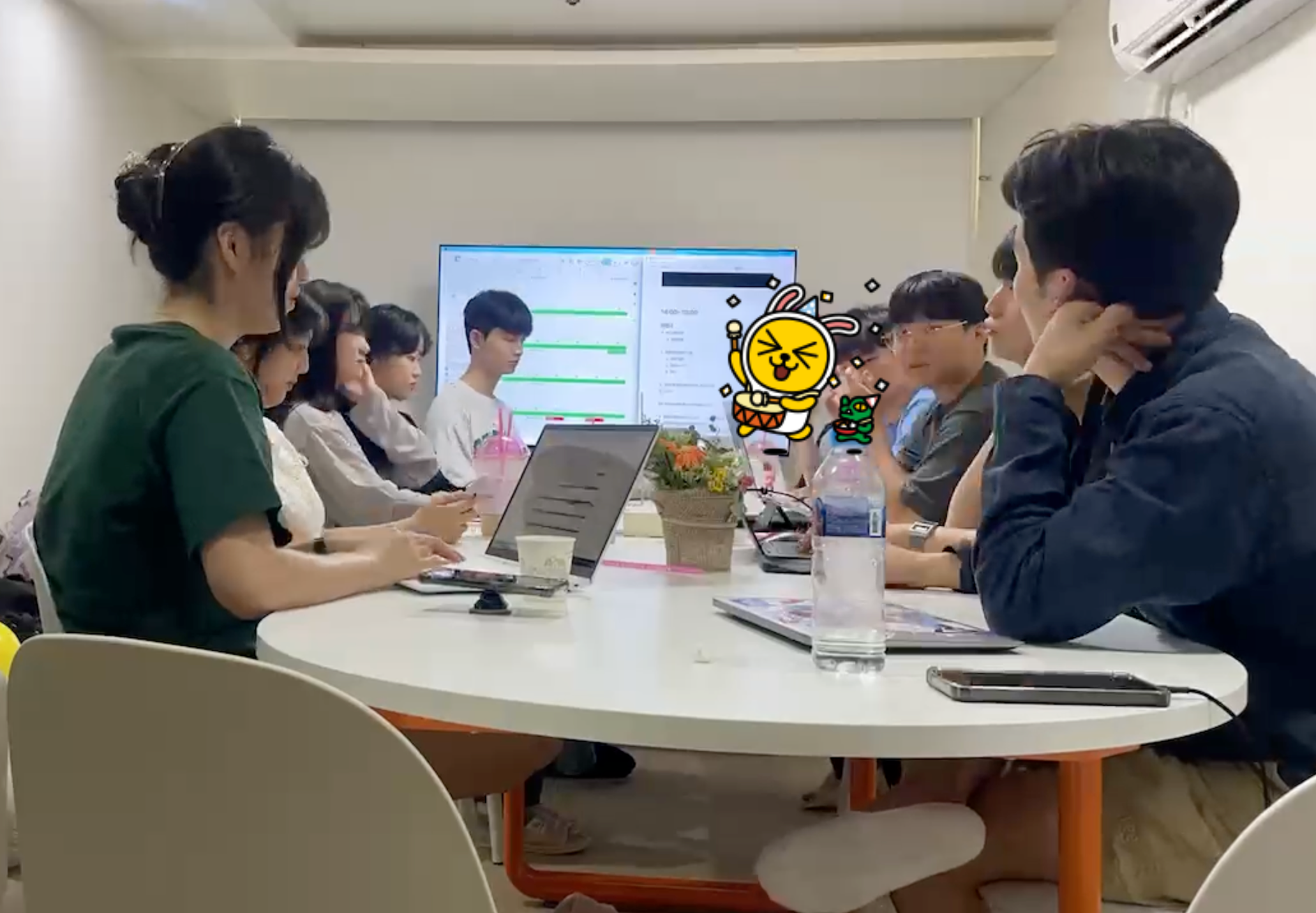 사진 전면 우측의 네이비상의를 입은 사람이 바로 me.. 운영진들은 이렇게 보통 기수 출범 전에 모여서 운영 전반에 몇 시간 동안 긴 회의와 현장 기획을 합니다. 8기가 시작되기 전부터 회동 자리를 가지며 어떻게 하면 동아리를 더 잘 운영할 수 있을까 고민했던 시간이네요.
